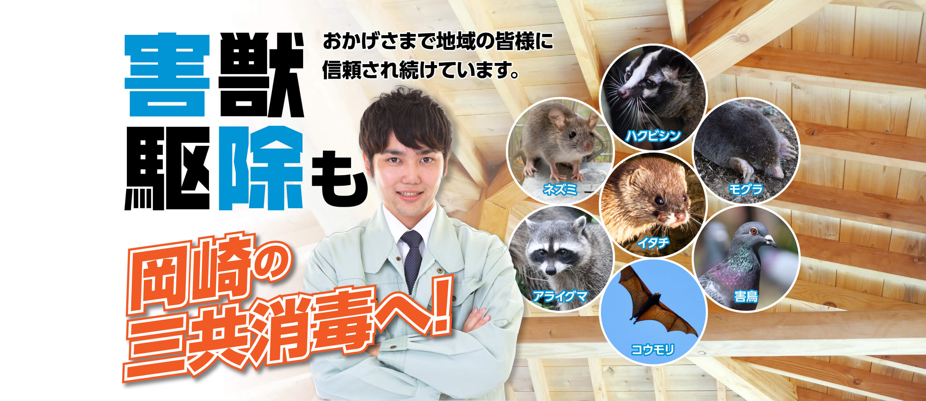 徹底した害獣駆除と再発防止を念頭に、「一匹残らず徹底的に駆除」を目指してプロのスタッフが念入りに施工いたします。
